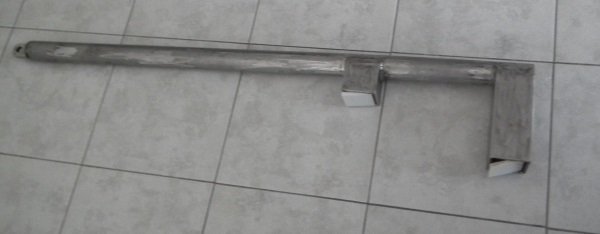 A l'arrivée en Nouvelle Zélande (bon d'accord, le bateau avait plus de 25000 milles...) il était fissuré (voir la réparation non peinte près de la fixation avant). Je l'ai fait renforcer par du plat d'alu (partie supérieure non peinte sur la photo). Cela lui donne un air assez patibulaire mais le bateau a fait depuis plus de 10000 milles et ça n'a pas bougé.