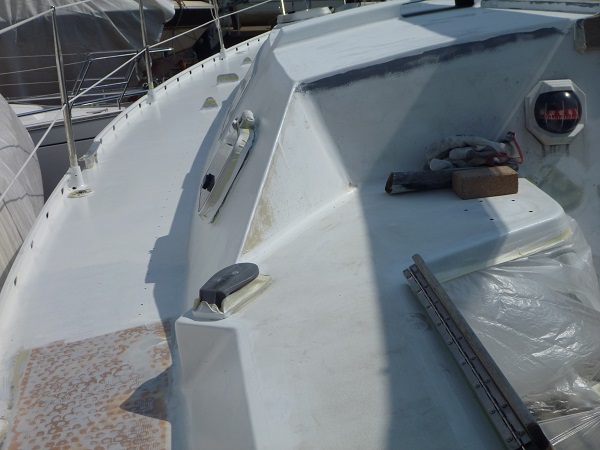 Mon OVNI 36 vieillit. Je suis obligé de rénover l'antidérapant du pont. Il est constitué d'un HPK ( matériau composite fait de liège et de résine ) collé avec une colle puissante qui doit être à base de polychloroprène.