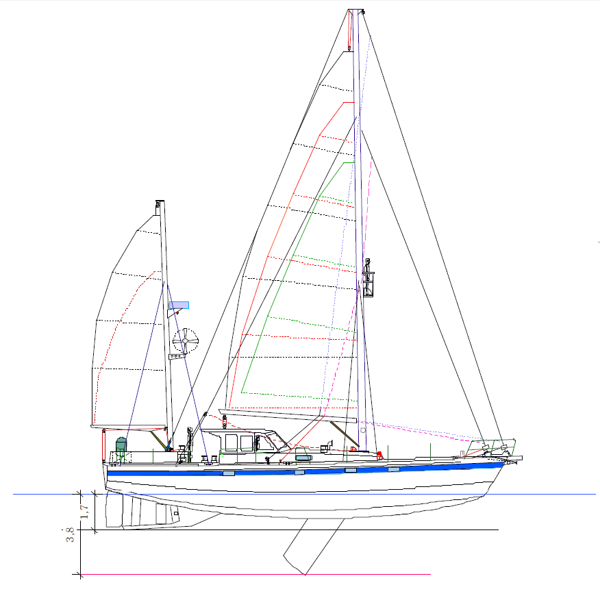 J'ai lu que Fleur Australe possède une quille relevable (mentionné à plusieurs reprises sur leur blog), par contre quand on regarde le plan (le seul que j'ai trouvé) on dirait plutôt une quille pivotante ou une dérive (voir ci-dessous).
