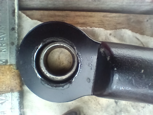 ) a été de recharger le trou et de le tarauder de nouveau au bon diamètre, ainsi que de mettre deux rondelles bien larges pour que le serrage de l'axe tienne bien sans bouger.