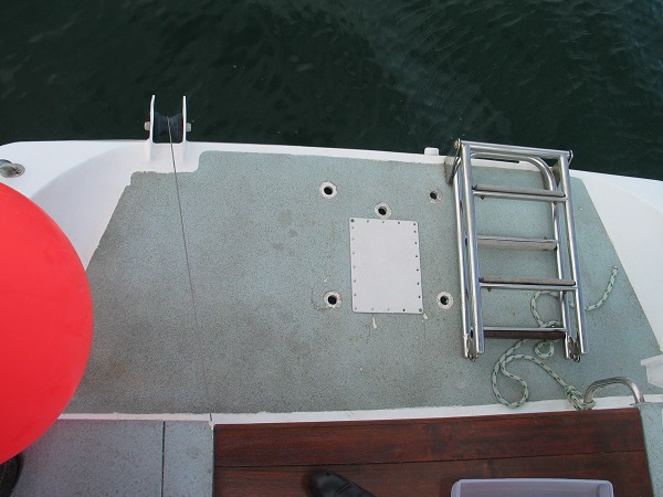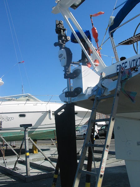 Vue générale sans l’aérien. On note la présence d’amarres de sécurité en câble inox extra souple de 2 mm permettant d’assurer toutes les pièces amovibles qui peuvent être amené à être désassemblées au-dessus de l’eau !!!!