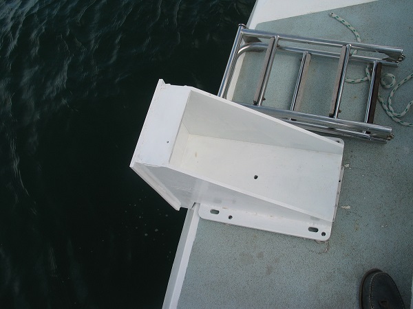 Et enfin si c'était à refaire je ferais un système basculant autour des deux vis le plus à l'intérieur de la jupe! ce régulateur est très bien mais c'est lourd comme un âne mort et délicat à installer/démonter au dessus de l'eau. cela serait plus facile basculé à l'horizontal.