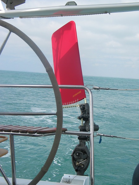 - Je vais étudier un système avec un câble sous flexible (genre cable de direction pour moteur hors-bord afin d’indexer le safran du régul sur le safran principal par l’intermédiaire des mouvements du secteur de barre. Cela permettrait, lorsque le régul n’est pas en fonction et le safran libéré, qu’il s’oriente dans la même sens que le safran principal au lieu de rester fixe s’il est pinoché ou de s’orienter au petit bonheur s’il est libéré. Nous nous sommes rendu compte de l’utilité d’une solution de ce type dans les marches arrière pour sortir de notre place de ponton. Cela semble en plus intellectuellement plus élégant. La liaison amovible serait reliée au manche permettant l’introduction d’une barre franche de secours car celle fournie avec le bateau par ALUBAT fait sourire à moins d’être nain et très costaud……