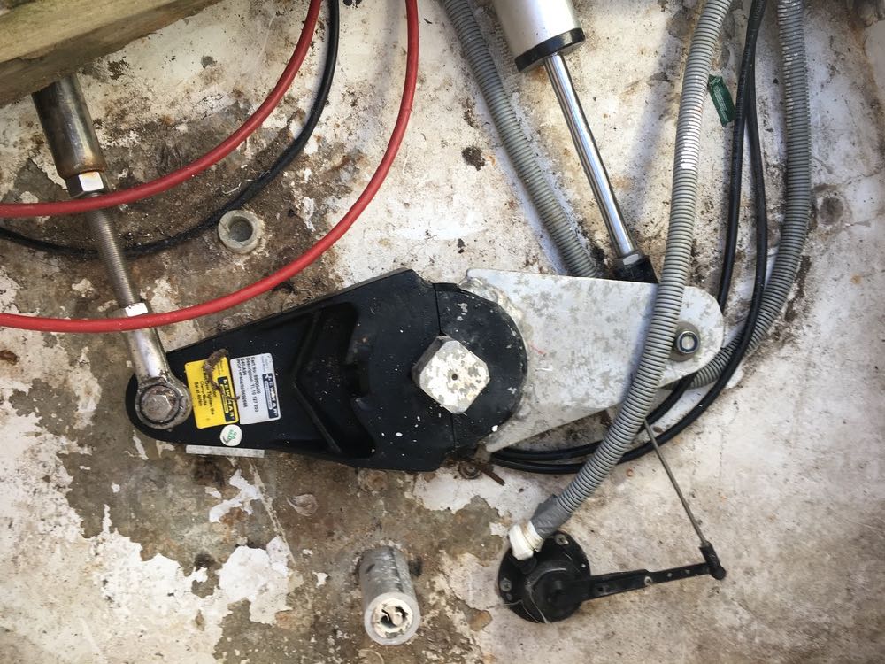 Le vérin est prévu pour pouvoir rester à l'extérieur dans l'emplacement mentionné par Kev plus haut, mais pour la pompe c'est mieux de la mettre à l'intérieur d'un coffre de l'autre côté de la cloison. Il faudra retirer les flexibles de l'ensemble linéaire L&S pour les passer à travers la paroi et ensuite purger. En voyage c'est utile de savoir purger ce circuit et d'avoir de l'huile hydraulique spéciale (voir site L&S) et des flexibles de rechange car tendance à se corroder avant le vérin, surtout si cet endroit sous le caillebotis n'est pas souvent rincé à l'eau douce.
