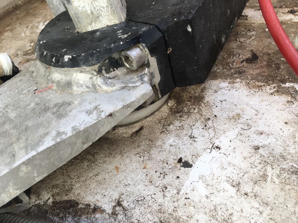 Il faut respecter les côtes indiquées par L&S (voir le léger décalage ou léger angle par rapport axe longitudinal du bateau comme indiqué sur le schéma de L&S ci-dessus) pour que le vérin travaille correctement. Il faut utiliser du frein filet Loctite sur certains écrous (doubles) qui ne doivent pas partir et bien sûr isoler tous les boulons inox de l'alu du fond de cockpit avec la pâte qui va bien.