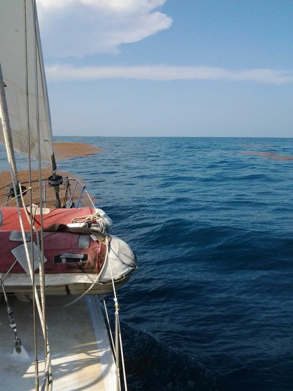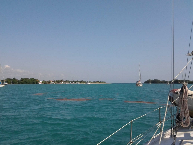 Énormément d'algues en surface, il semblerait que toute la Caraïbe en soit couverte.