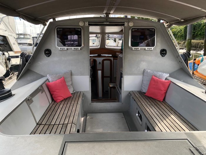 Je me pose aussi les mêmes questions. Sans vouloir faire un accès 100 % étanche, ce qui supposerait l'installation d'un grand panneau de pont en travers de la descente comme sur les Passoa mais difficile à installer après coup, on pourrait envisager une porte à 2 battants en plexiglass épais avec des joints périphériques pour remplacer les panneaux verticaux coulissants. Ca aurait le mérite de rester pratique, facile à ouvrir ou fermer rapidement dans le mauvais temps ou par temps froids. Je crois que certains Ovni ont déjà installé ce type de portes. Je me demande comment, cad quelles charnières et système de fermeture utiliser pour rester suffisamment étanche, une fois fermées ?